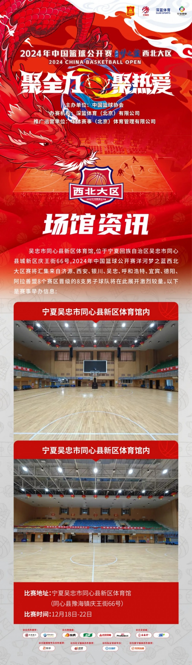 12月18-22日,2024年中國籃球公開賽洋河夢之藍西北大區(qū)賽將在寧夏吳忠市同心縣新區(qū)體育館舉辦,來自西北賽區(qū)各省市的8支男籃隊伍將在吳忠同心激烈爭奪通往全國總決賽的入場券。這個冬日,讓我們一起相聚吳忠同心,見證屬于“西北之星”的籃球傳奇!