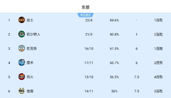 在擊敗魔術(shù)后,尼克斯以16升10負超越魔術(shù)升至東部第三,魔術(shù)則是以17升11負排在東部第四。