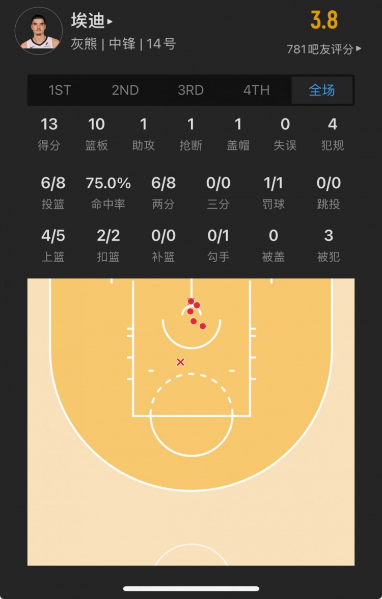 灰熊9號秀 扎克-埃迪 登場24.3分鐘