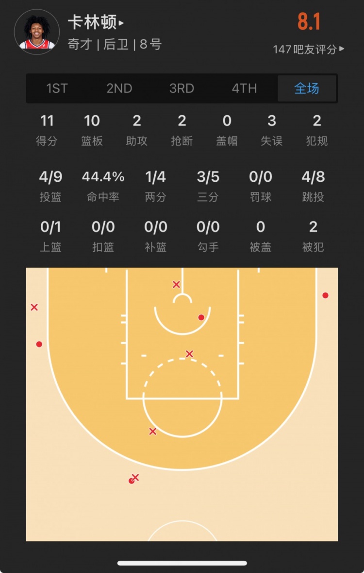 奇才14號秀 卡爾頓-卡林頓 登場40.4分鐘