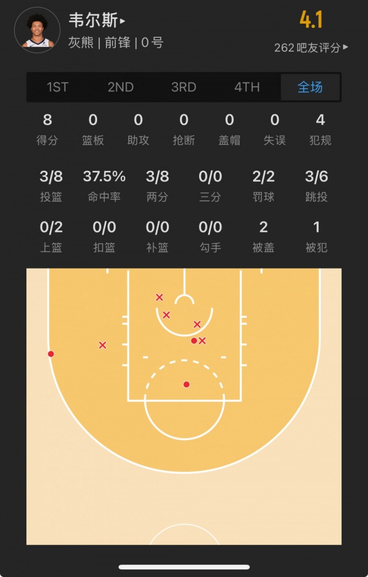 灰熊39號秀 杰倫-韋爾斯 登場17.7分鐘