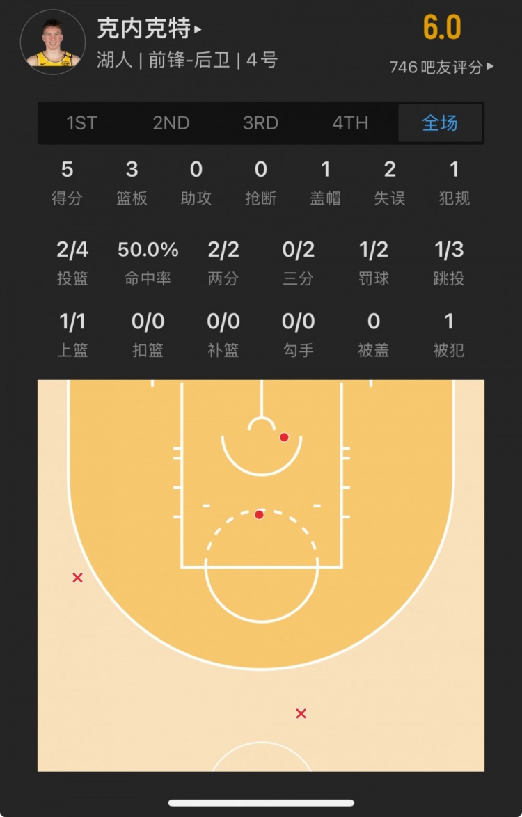 湖人17號秀 道爾頓-克內(nèi)克特 登場12.8分鐘