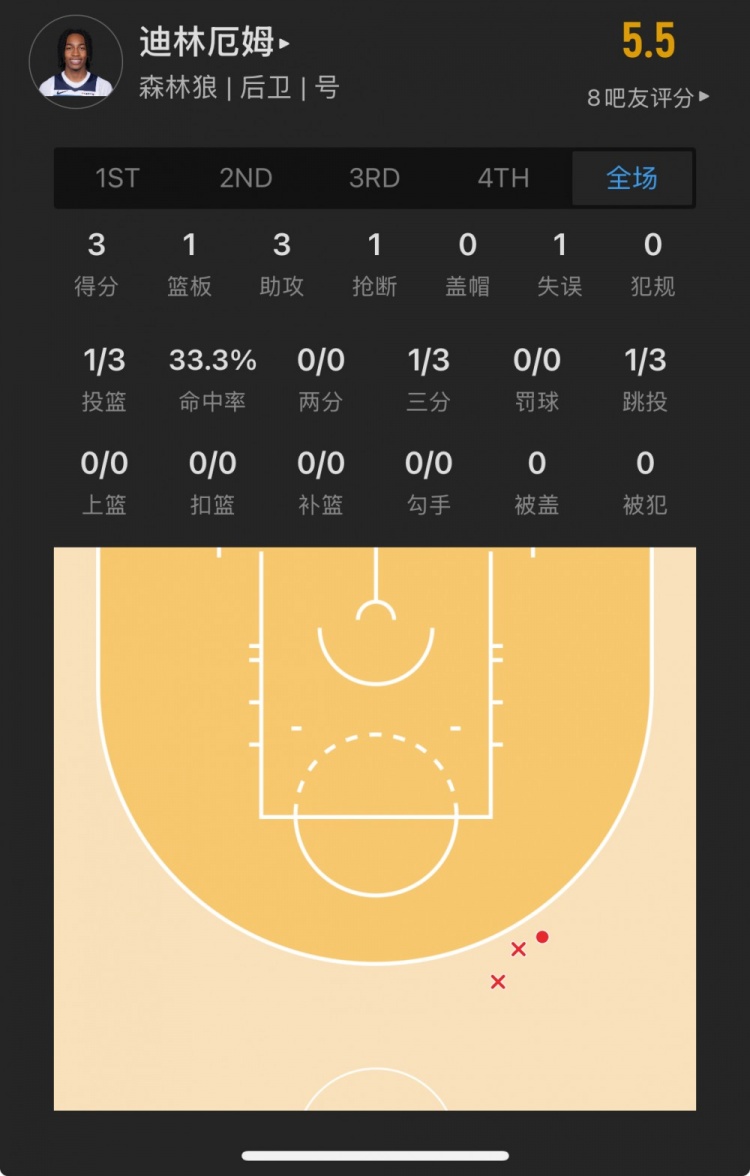 森林狼8號秀 羅布-迪林厄姆 登場9.5分鐘