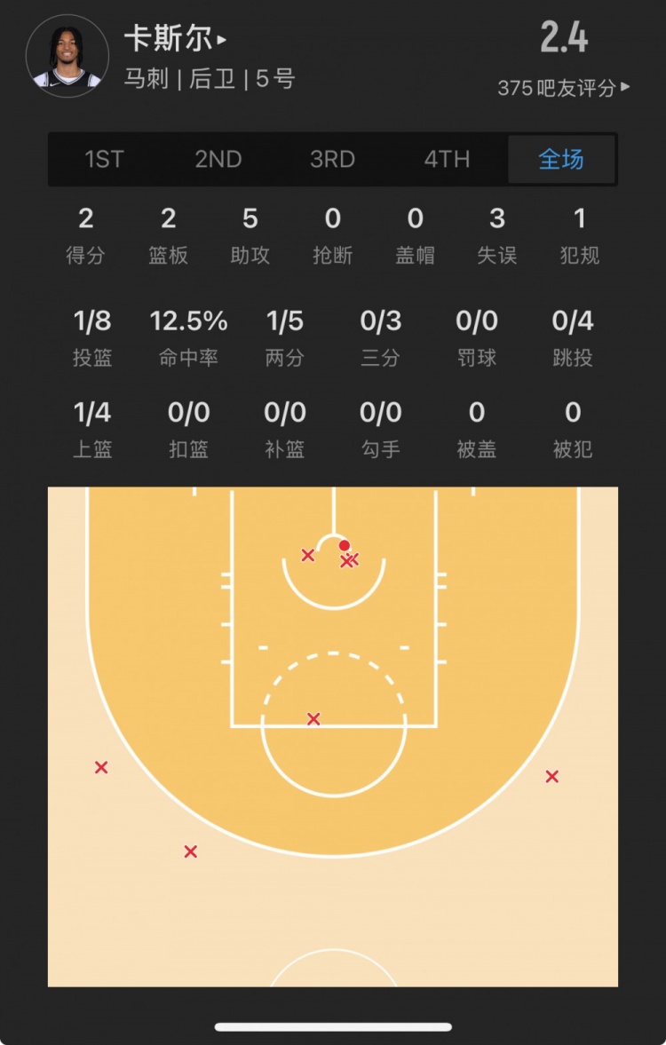 馬刺4號秀 斯蒂芬-卡斯爾 登場23.0分鐘