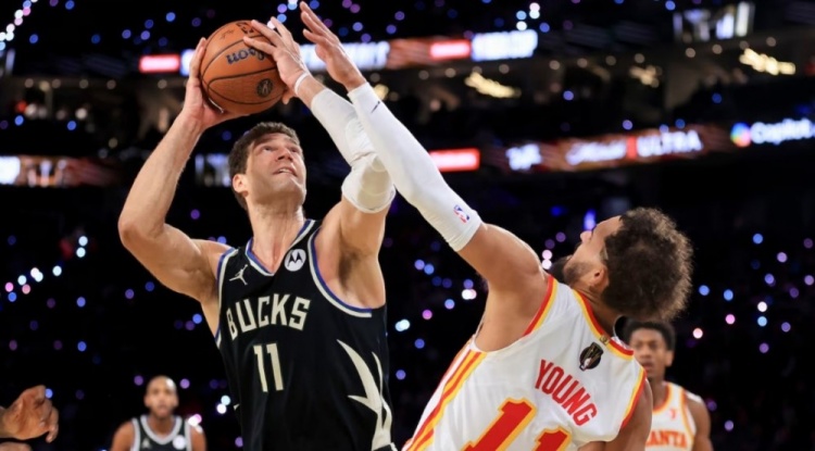 另一方面,他和隊(duì)友的防守習(xí)慣也不好。這一回合的特雷楊非常主動(dòng),第一時(shí)間補(bǔ)到了內(nèi)切的布朗,但他忘了自己盯防的是特倫特,換防的時(shí)候完全沒和博格丹做一點(diǎn)溝通,于是一個(gè)巨大的三分空位呼之欲出。