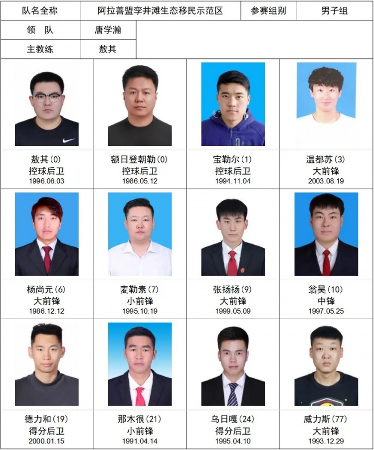 來自阿拉善盟賽區(qū)的阿拉善盟孿井灘生態(tài)移民示范區(qū)籃球隊,成立于2022年,是由內(nèi)蒙古自治區(qū)阿拉善盟各個機關(guān)、事業(yè)單位、企業(yè)及個體的工作人員組成。