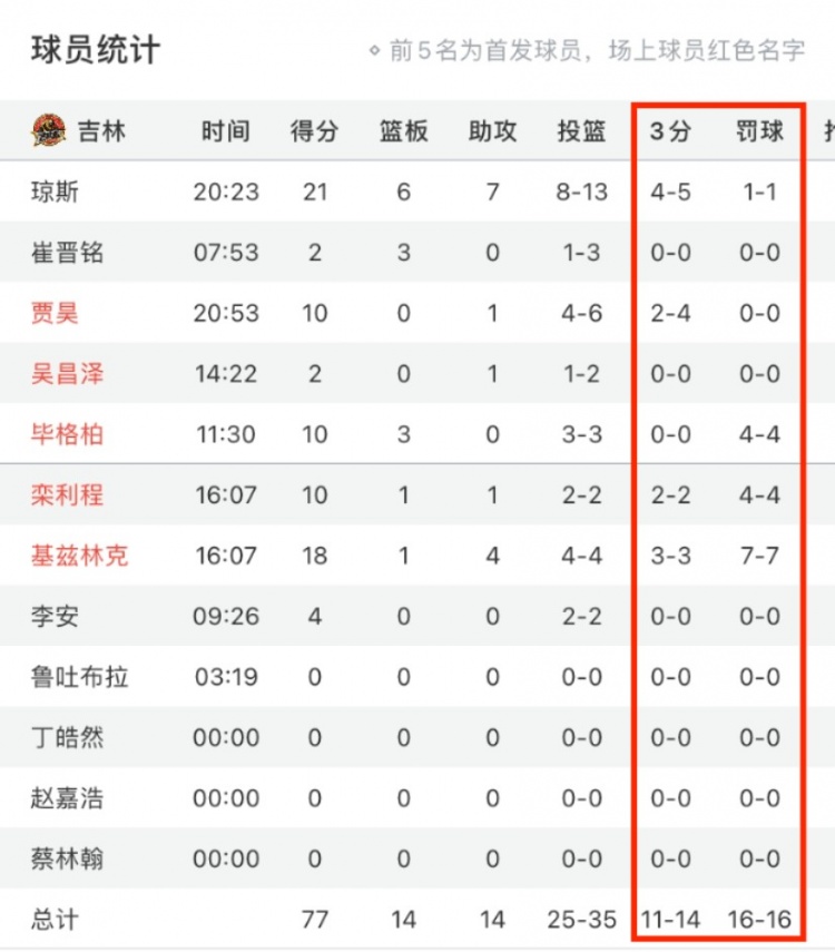 上半場(chǎng)比賽,吉林進(jìn)攻端全面開(kāi)花,外線非常神準(zhǔn),全隊(duì)三分14中11,命中率高達(dá)78.6%!