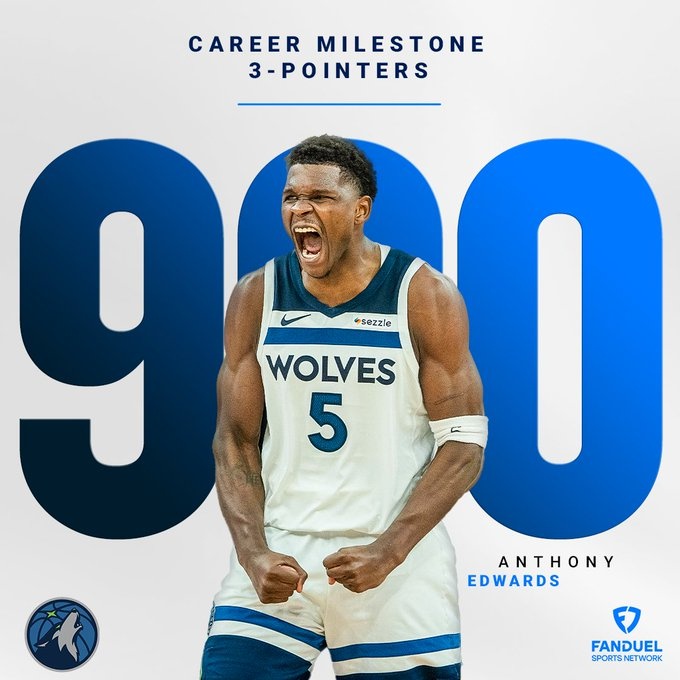 比賽第三節(jié)末段,愛德華茲飚中一記三分。至此,他的生涯三分球命中數(shù)達到900球,暫時排名第二。