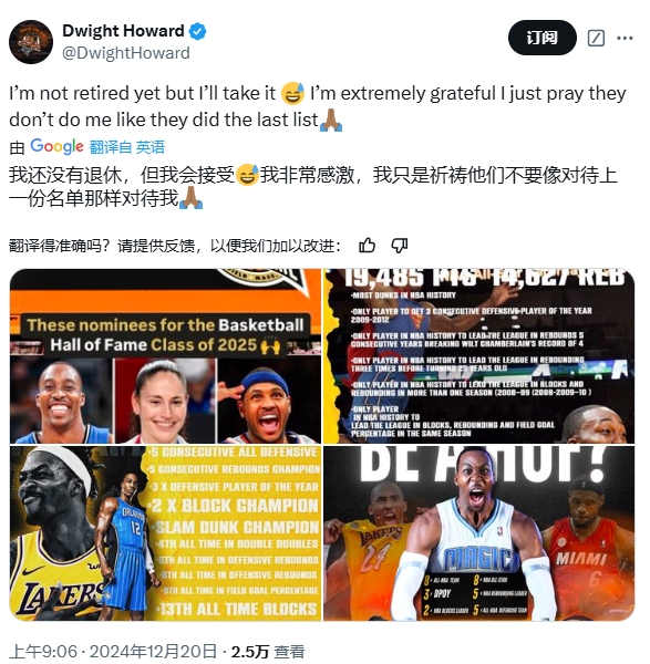 除特別注明外,本站所有內(nèi)容均為24直播網(wǎng)整理排版,轉(zhuǎn)載請(qǐng)注明出處:那你別進(jìn)了?霍華德轉(zhuǎn)發(fā)名人堂候選:我還沒(méi)退役呢 但我會(huì)接受
