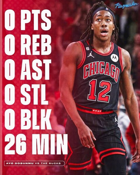 3、阿約-道蘇姆,2023年12月11日,公牛129-133雄鹿,出場26分鐘,6投0中