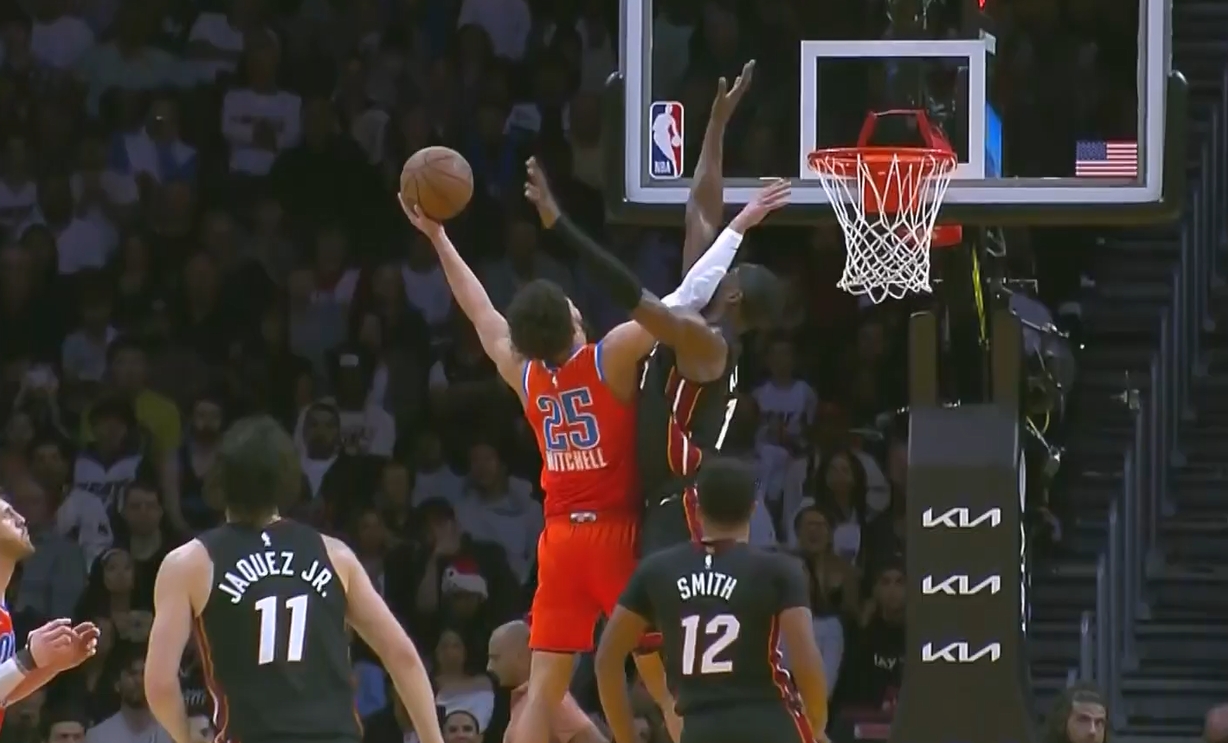 米切爾上籃給了阿德巴約一下,吃到進攻犯規(guī)!