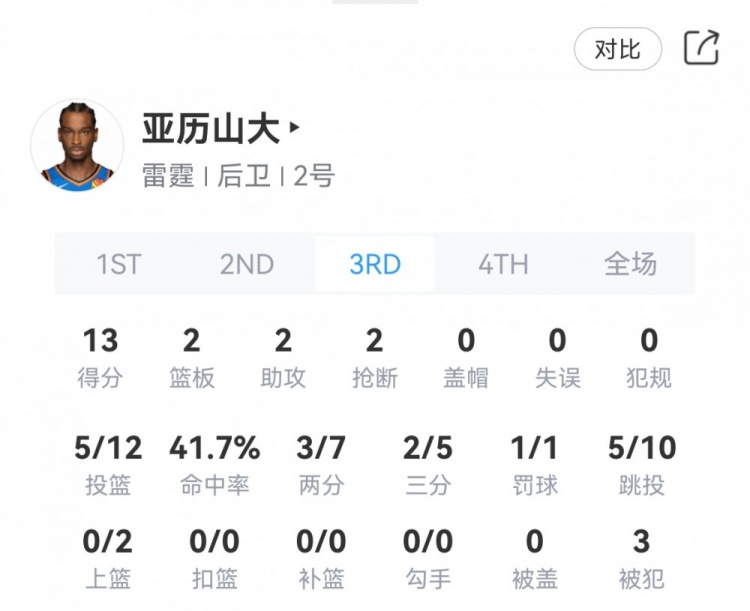 第三節(jié),雷霆核心亞歷山大表現(xiàn)不俗,單節(jié)12投5中拿到13分2籃板2助攻2搶斷,幫助球隊單節(jié)31-23凈勝熱火8分,三節(jié)打完雷霆81-70領(lǐng)先熱火11分。
