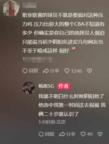隨后有球迷在楊政評論區(qū)留言:“職業(yè)聯賽的球員不就是要面對這種壓力嗎?壓力比你大的整個CBA不知道有多少,但確實是你自己的選擇沒人強迫,只能說當初少陰陽矣進宏幾句網友也不至于噴成這樣。祝好?!?/p>