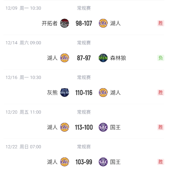近5場比賽湖人取得了4場勝利,并且其中4場將對手得分限制在100分及以下。