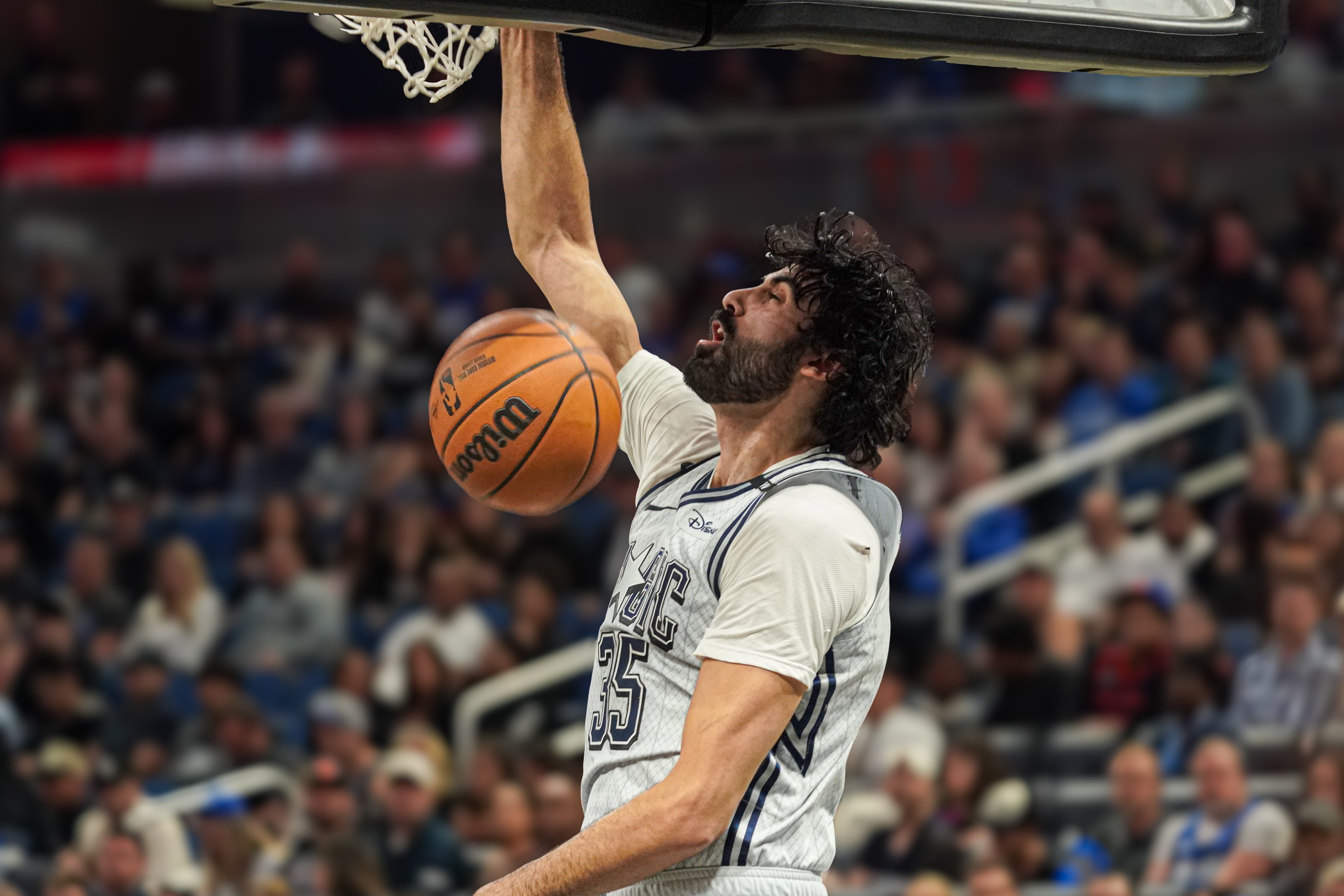 此役魔術(shù)中鋒比塔澤穩(wěn)定發(fā)揮,在球隊大比分落后的不利情況下,依然不斷沖擊內(nèi)線高效終結(jié),打了31分鐘8投8中,罰球3中2拿到18分13籃板1助攻2蓋帽。