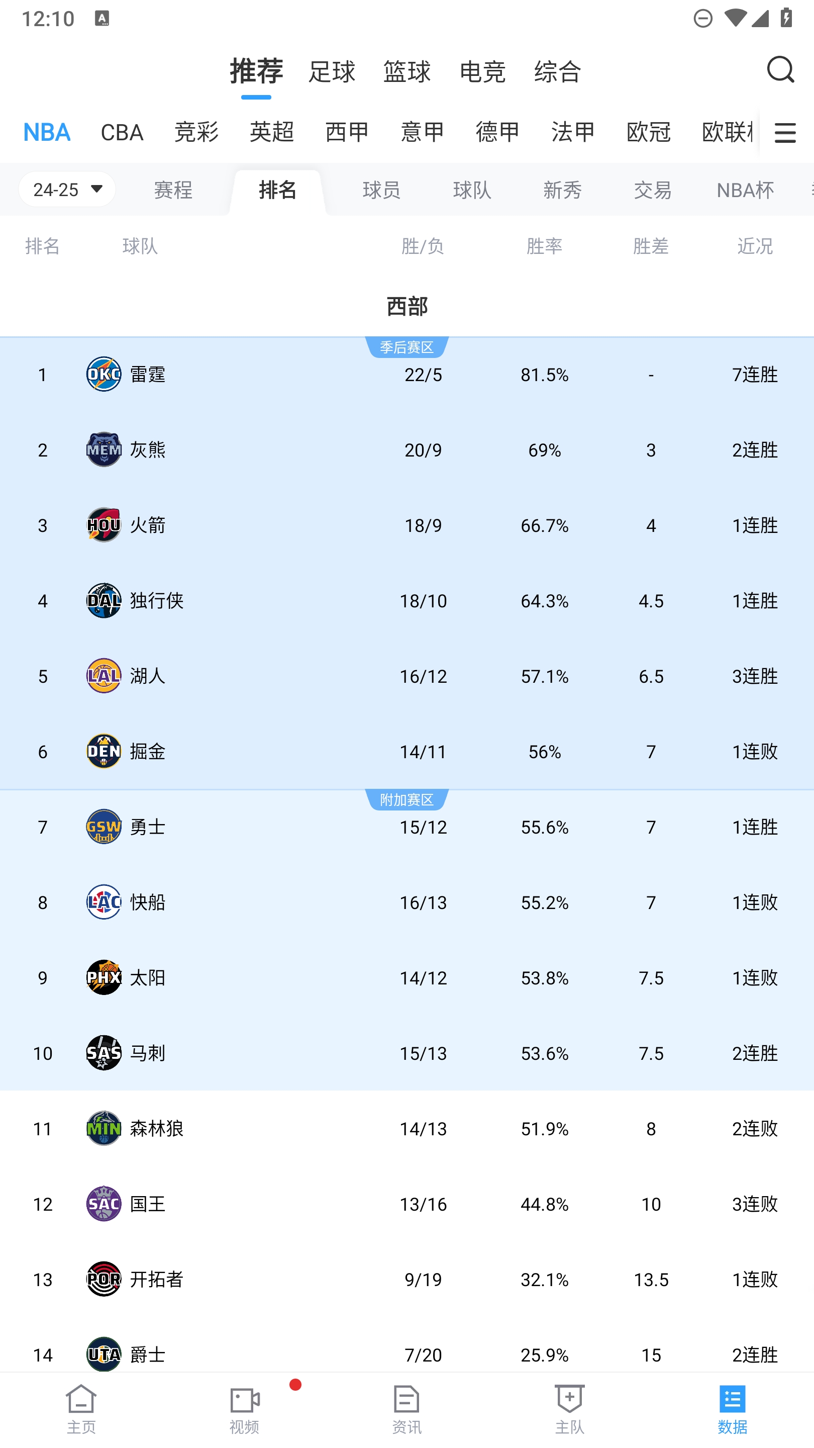 賽后,勇士將身前的快船和森林狼擠到了身后,西部排名從賽前的第10一躍來到第7!