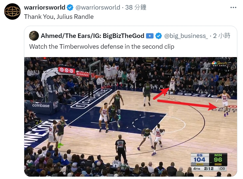 球隊的整體防守在輪轉(zhuǎn),蘭德爾跟著小佩頓,沒有去補(bǔ)空位的庫里