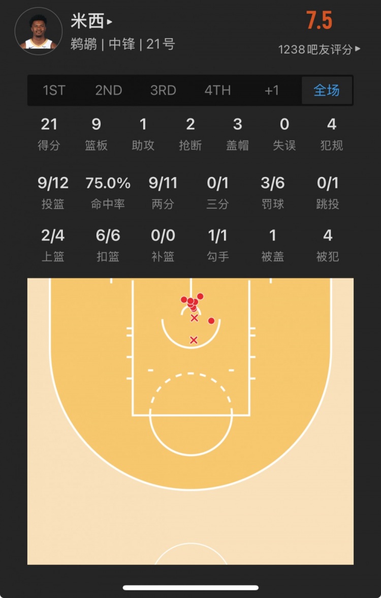 鵜鶘21號(hào)秀 伊夫-米西 登場39.9分鐘