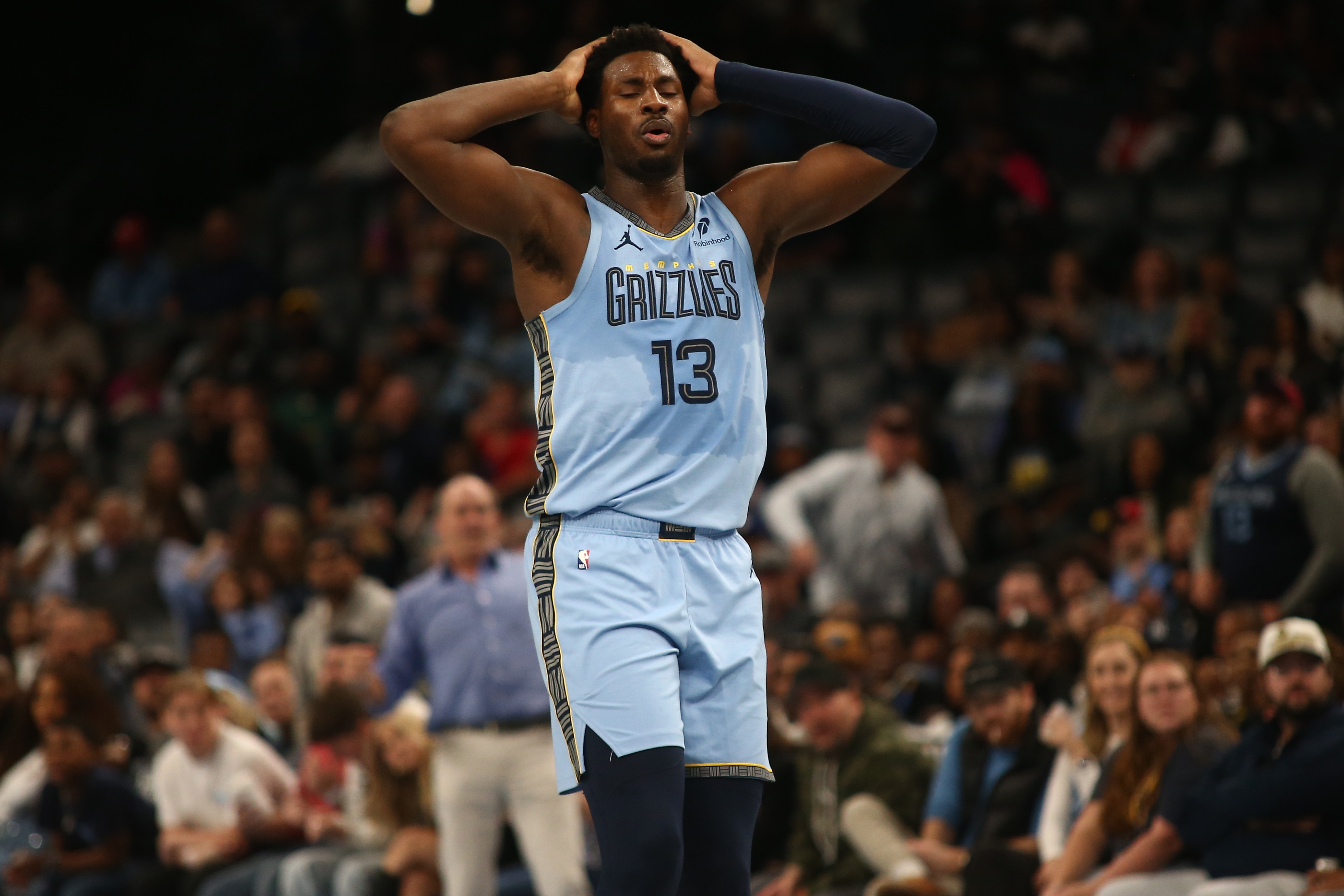 灰熊內(nèi)線賈倫-杰克遜本場(chǎng)比賽打得并不合理,在手感不佳的情況下依舊大量出手,尤其是第四節(jié)關(guān)鍵一攻面對(duì)哈登踩線失誤,最后續(xù)命三分也未投進(jìn)。