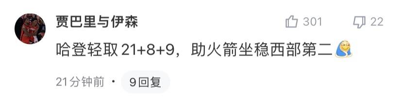 吧友熱評(píng)送上:哈登輕取21+8+9,助火箭坐穩(wěn)西部第二!