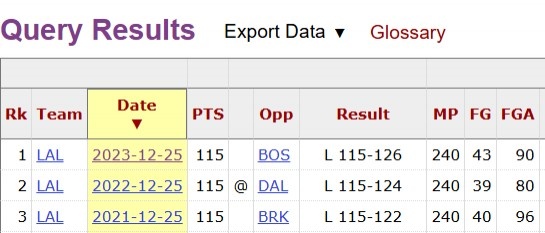 據(jù)統(tǒng)計(jì),在本賽季之前,湖人在圣誕大戰(zhàn)已經(jīng)遭遇3連敗,具體如下: