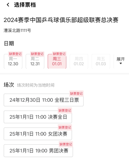 原來是因為,元旦前后舉行的是乒超聯(lián)賽的總決賽,聚集眾多頂尖高手,包括“莎頭組合”、林詩棟等一眾國手,而乒超的球市更是火爆,元旦當(dāng)天1月1日的所有比賽門票全部都已售罄,幾乎都在缺票登記中。