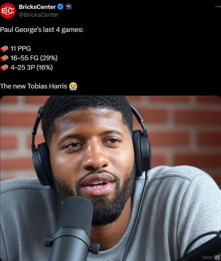 12月27日訊 今天,美媒BricksCenter曬出了喬治過去四場(chǎng)比賽的數(shù)據(jù):