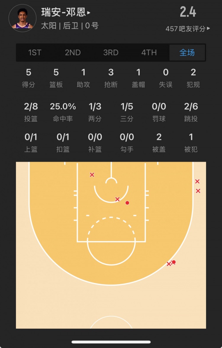 太陽(yáng)28號(hào)秀 瑞安-鄧恩 登場(chǎng)21.2分鐘