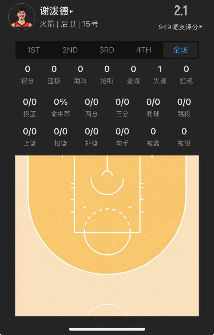 火箭探花秀 里德-謝潑德 登場(chǎng)4.1分鐘
