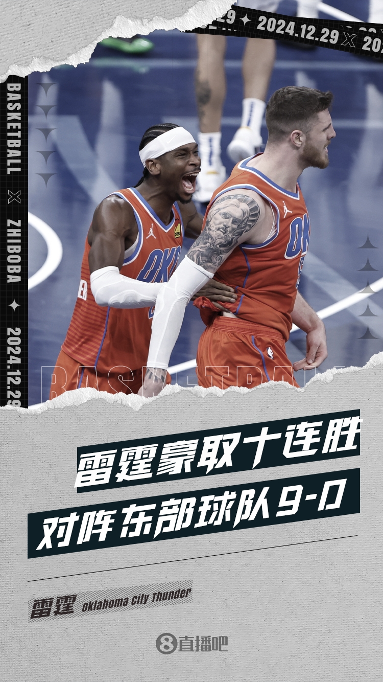 除特別注明外,本站所有內(nèi)容均為24直播網(wǎng)整理排版,轉(zhuǎn)載請注明出處:東方不敗雷霆豪取10連勝&繼騎士后第二隊(duì) 對陣東部球隊(duì)9-0