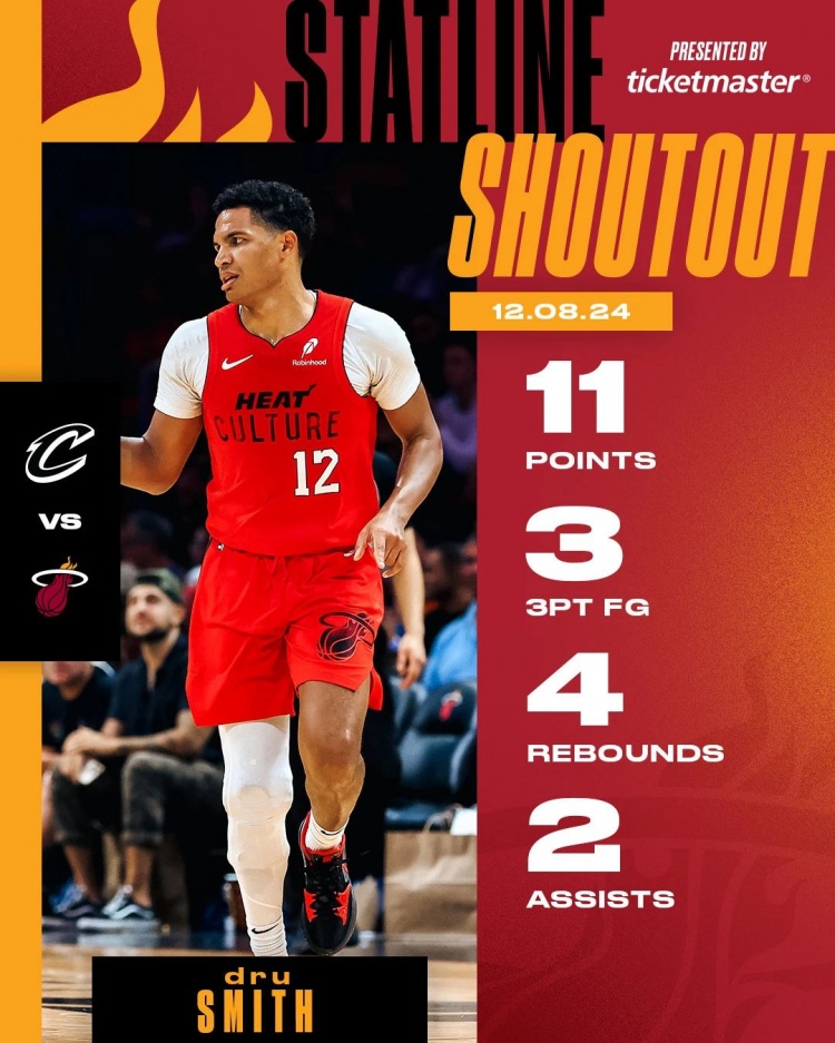 下一個賽季,2022年10月,德魯和熱火簽下雙向合同,11月13日被裁,加入天空力量;11月25日再次和熱火簽下雙向合同,12月11日再次被裁,加入天空力量。在前兩個賽季,關(guān)于他的新聞大致雷同,只是改下時間。他在熱火一共打了5場,在天空力量打了18場。
