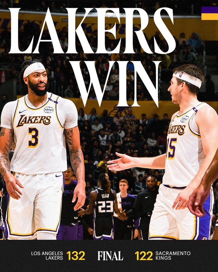 賽后湖人官方曬出本場獲勝海報(bào),封面人物給到了濃眉和里夫斯。