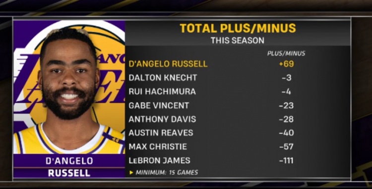 本賽季湖人成員正負(fù)值(最少打15場(chǎng)):