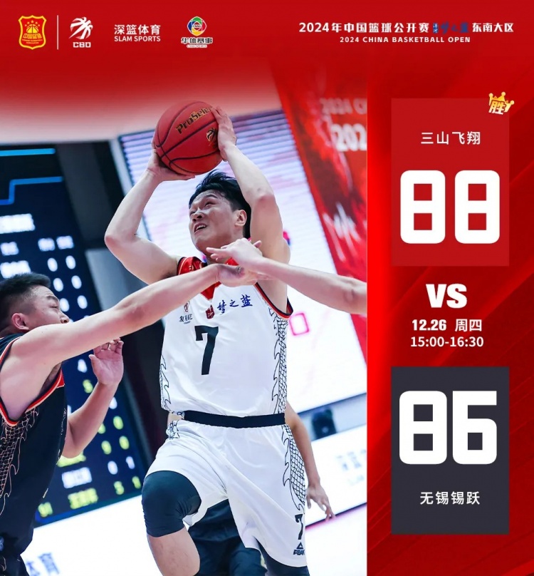 12月26日,2024年中國籃球公開賽洋河夢之藍(lán)東南大區(qū)賽進(jìn)入第二比賽日,A組三山飛翔頑強(qiáng)拼搏拿下首勝,浙江互創(chuàng)建筑則拿下兩連勝;B組南京華泰體育大比分戰(zhàn)勝對手,寧波打虎拿下兩連勝。今日比賽情況如下: