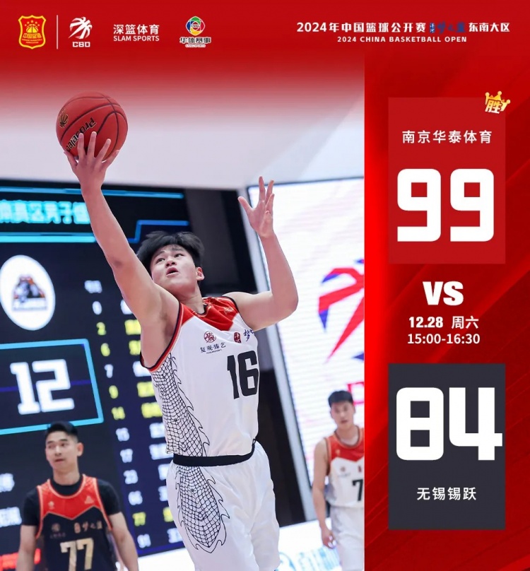 比賽開場,無錫錫躍迅速進(jìn)入比賽狀態(tài),2號康晶晶與9號施濱楠手感火熱,開場連續(xù)進(jìn)攻得手拉開比分。南京華泰體育則較為慢熱,幾個回合后逐漸打開狀態(tài),7號張政再次率隊(duì)發(fā)起進(jìn)攻,6號孫旭內(nèi)線實(shí)力超群,更有快攻送上,比賽相當(dāng)精彩。下半場比賽開始,攜帶12分優(yōu)勢的南京華泰體育進(jìn)攻效率不減,無錫錫躍全力抵擋,14號徐明兵拿到個人四次犯規(guī),0號徐中偉也陷入犯規(guī)困境。比賽后程,南京華泰體育5人得分上雙,將分差再次擴(kuò)大,最終南京華泰體育99-84戰(zhàn)勝無錫錫躍。