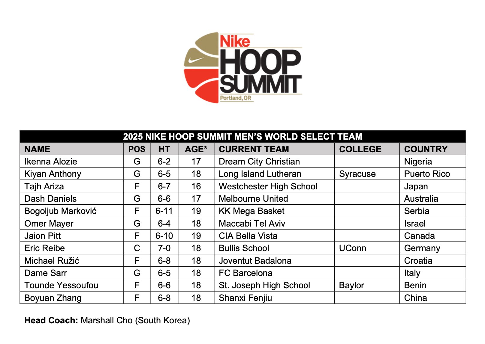 03月08日訊 2025年耐克巔峰賽名單今日公布,中國(guó)18歲小將張博源入選世界隊(duì)名單。