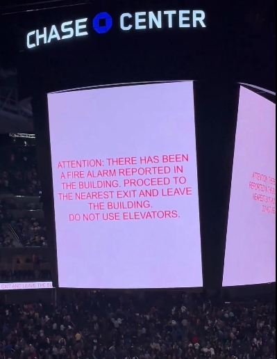 第一節(jié)結(jié)束后,現(xiàn)場響起了火情警報,球迷紛紛開始撤離;