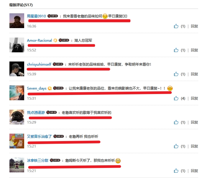 而這首歌曲的網(wǎng)易云評論區(qū)也出現(xiàn)了大量的湖人&詹姆斯球迷一起祝福詹姆斯早日康復(fù)。