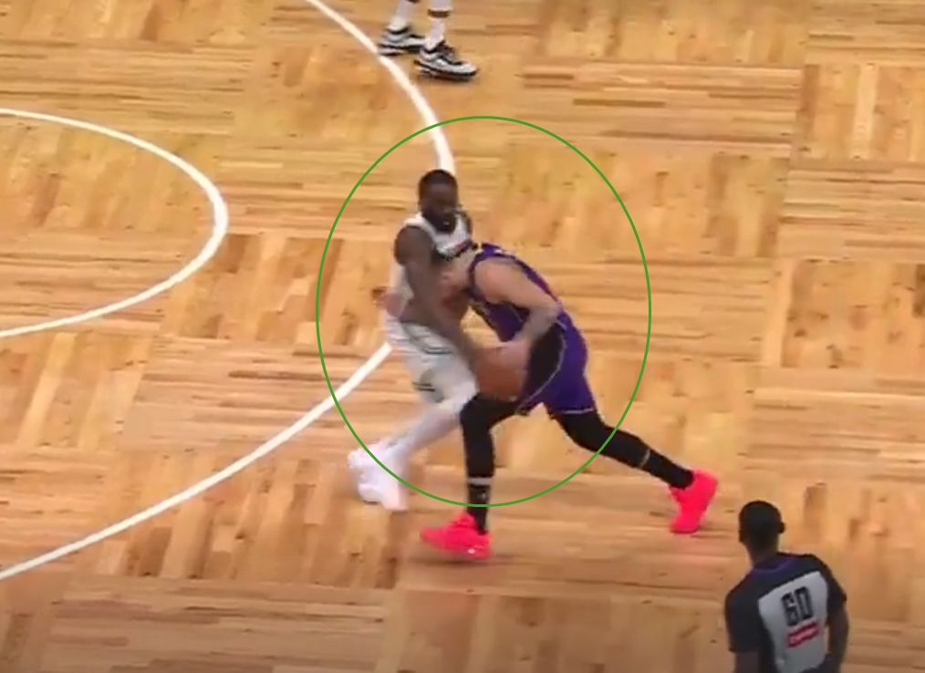 嗡嗡的!東契奇的大腦袋被打顫了好幾下主裁干看著沒管