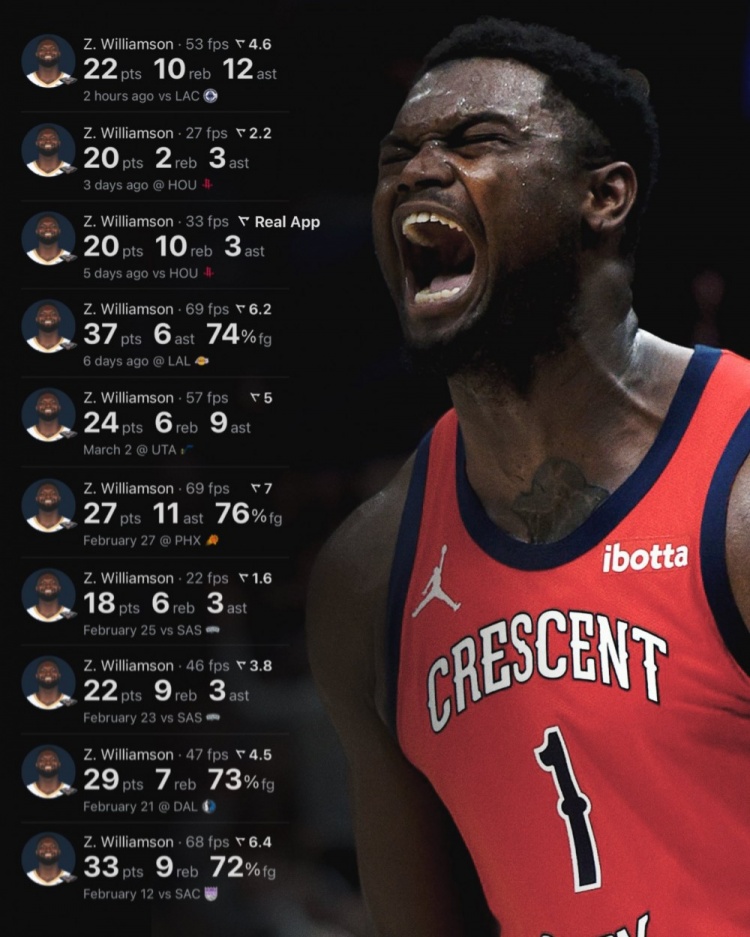 據(jù)統(tǒng)計(jì),錫安在過去10場出戰(zhàn)的比賽中場均可以得到25.2分7.3籃板6.0助攻,他在291分鐘的出場時(shí)間里得到了252分。