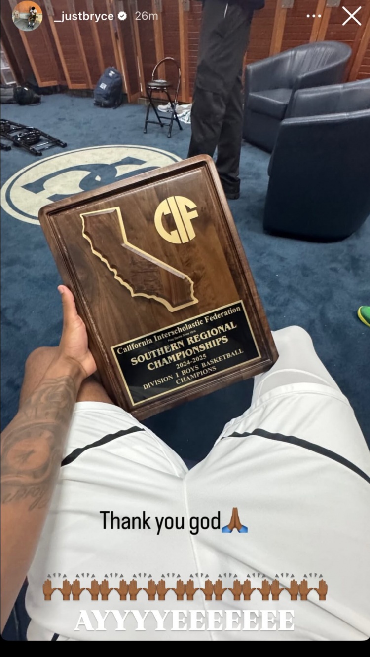 3月12日訊 今日,湖人前鋒詹姆斯的小兒子布萊斯更新Instagram Story,曬出他獲得的南加州地區(qū)男子青年籃球賽冠軍獎(jiǎng)牌。