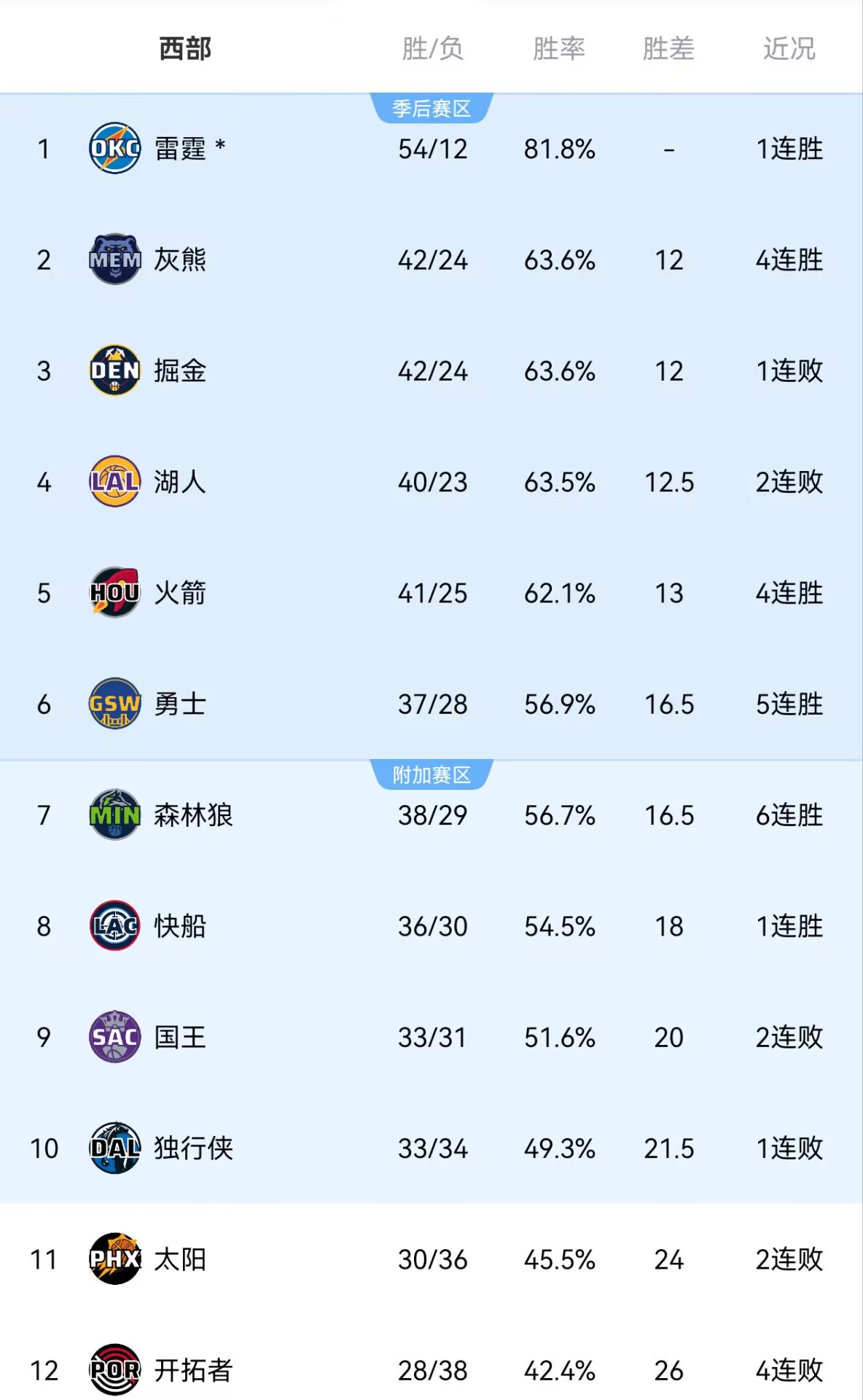 同時,掘金與湖人的勝場差僅剩0.5個場次。