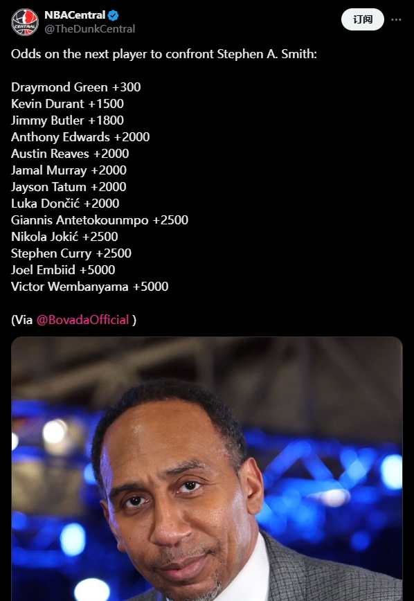 - 這也行網(wǎng)站開(kāi)出下一位和A-史密斯對(duì)峙球員賠率:追夢(mèng)最被看好