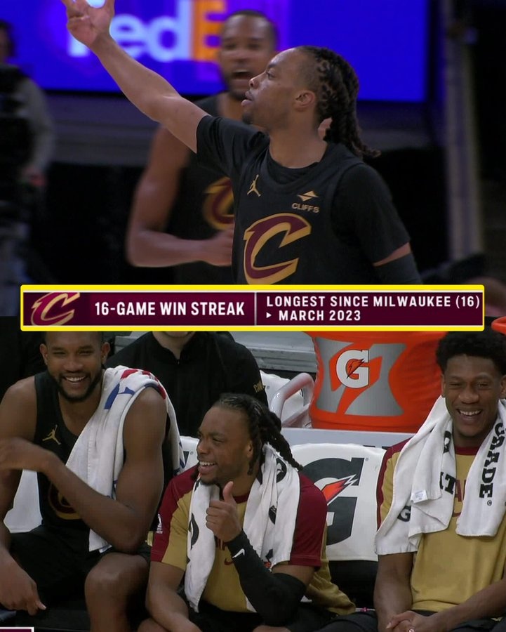 轉播方給出數(shù)據(jù),騎士的16連勝也是自2023年3月的雄鹿以來,聯(lián)盟最長的連勝紀錄。