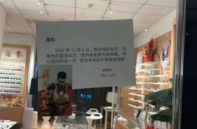 除特別注明外,本站所有內(nèi)容均為24直播網(wǎng)整理排版,轉(zhuǎn)載請(qǐng)注明出處:熱愛!北京一家眼鏡店老板明日停業(yè)一天 去看孫悅的球衣退役儀式