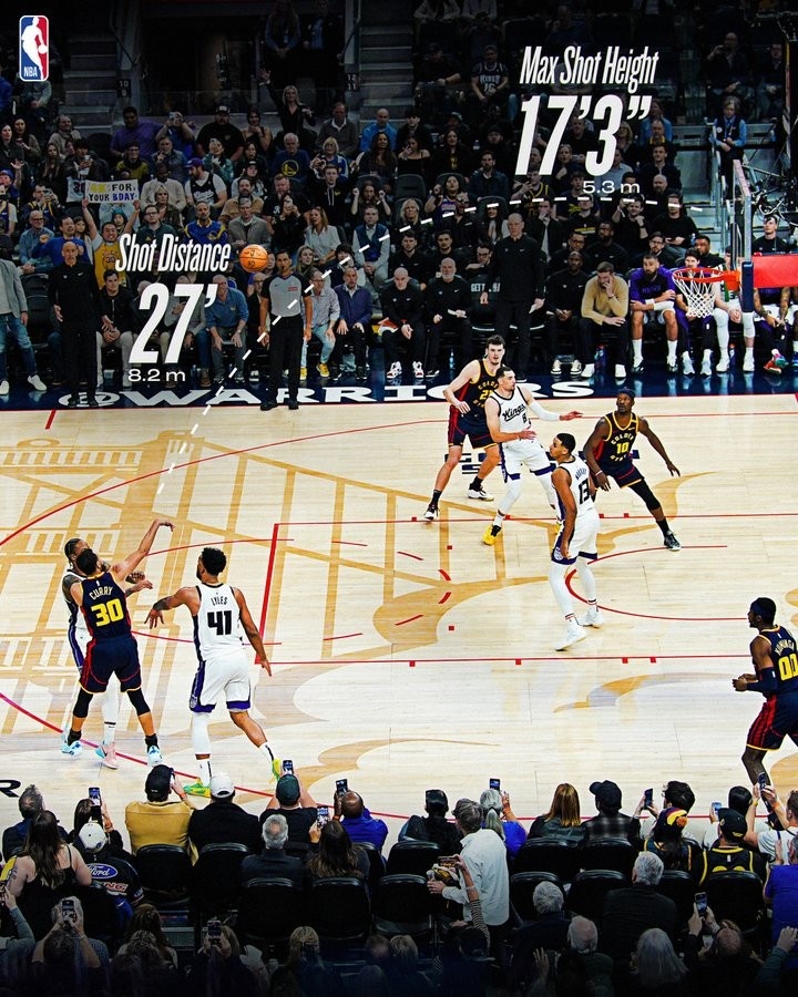- 歷史性的一投!庫里第4000記三分 出手距離8.2米&最高點(diǎn)5.3米