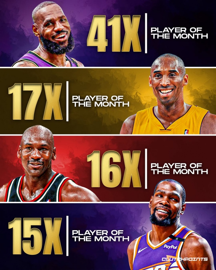 發(fā)布時(shí)間:2025年03月17日 12:10點(diǎn)擊:欄目:籃球新聞 除特別注明外,本站所有內(nèi)容均為24直播網(wǎng)整理排版,轉(zhuǎn)載請(qǐng)注明出處:詹姆斯41次月最佳歷史斷檔第一 科比17次第二 喬丹16第三KD15第四 本文標(biāo)簽: 籃球 nba 湖人 詹姆斯 太陽 公牛 科比 喬丹 杜蘭特