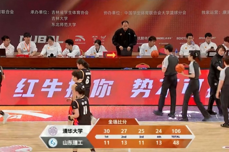 末節(jié)決戰(zhàn),王鏝淋接連5分直接拉開50分以上領(lǐng)先,山東理工受到體力影響半節(jié)多僅得2分,清華大學(xué)17-2攻擊波繼續(xù)擴(kuò)大到60分以上領(lǐng)先優(yōu)勢(shì)。張喬雨罰球終于止住頹勢(shì),程清娜補(bǔ)籃也命中,時(shí)間越來越少但山東理工始終不放棄,王虹壓哨中投命中,最終清華大學(xué)106-48大勝山東理工,闖入決賽。