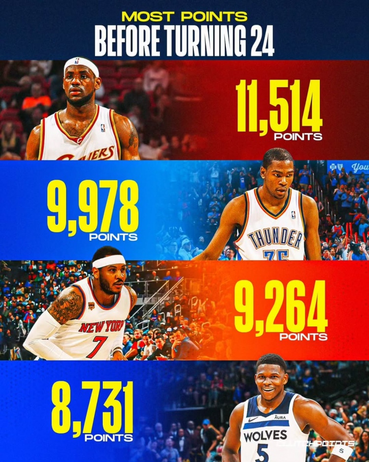 發(fā)布時(shí)間:2025年03月18日 18:08點(diǎn)擊:欄目:籃球新聞 除特別注明外,本站所有內(nèi)容均為24直播網(wǎng)整理排版,轉(zhuǎn)載請(qǐng)注明出處:球星24歲前得分榜:華子8731登第4 詹姆斯斷檔第1 KD甜瓜分列2、3 本文標(biāo)簽: 籃球 nba 森林狼 湖人 太陽(yáng) 詹姆斯 杜蘭特 愛(ài)德華茲 安東尼