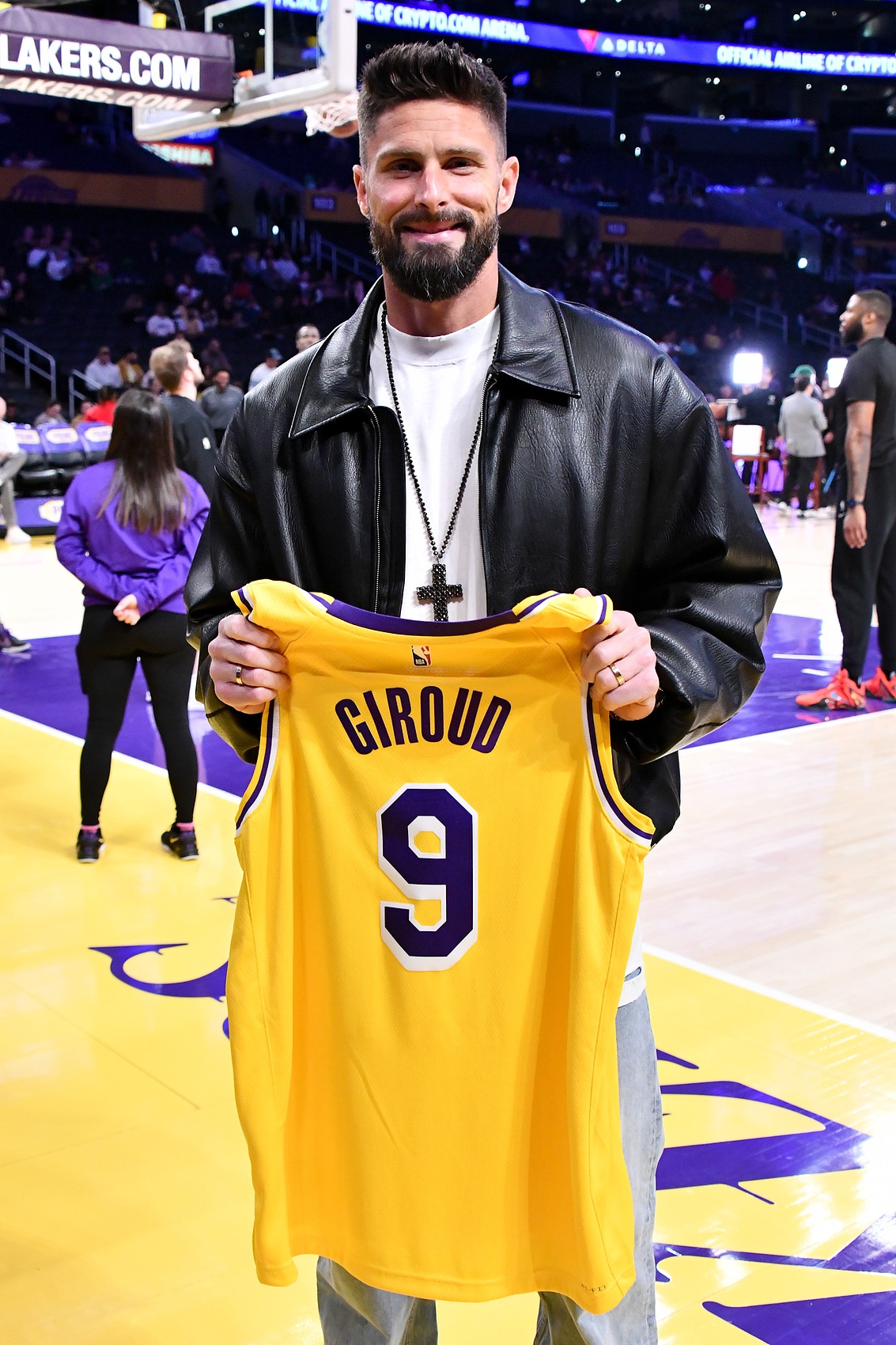 法國(guó)足球運(yùn)動(dòng)員、現(xiàn)年38歲的吉魯現(xiàn)效力于洛杉磯銀河FC,觀戰(zhàn)同城球隊(duì),獲贈(zèng)湖人9號(hào)戰(zhàn)袍(吉魯自己的號(hào)碼是9號(hào))
